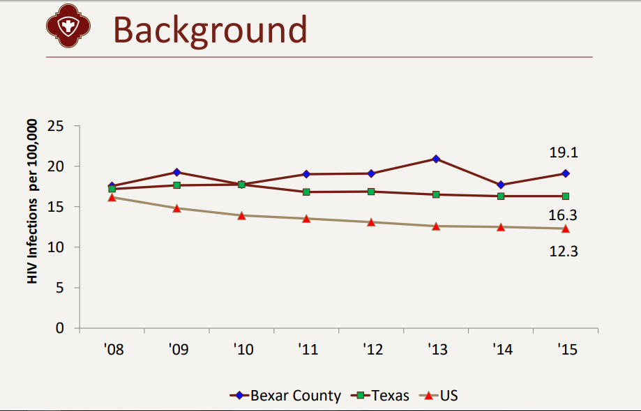 Yesterday, San Antonio City Council voted to pass a measure recommended by San Antonio Metro Health District to reduce HIV outcomes in SA using $20,000 in grant funding (Agenda Item 17). The HIV rate in SA is high above the national and state averages, and young African American and Hispanic males in SA are at a disproportionate risk for HIV.